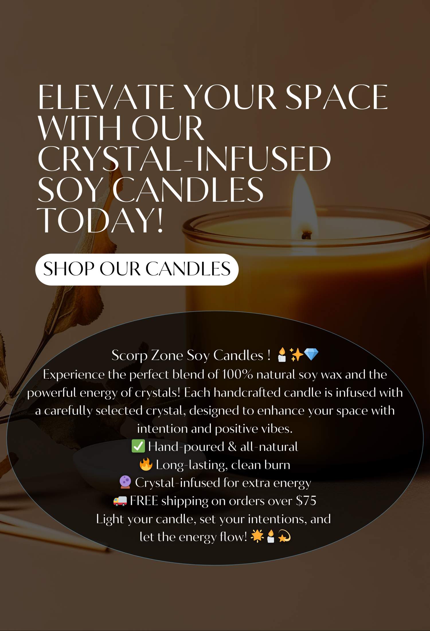 🕯 Crystal-Infused Soy Candles – 100% natural, hand-poured soy wax with powerful crystals inside. (hand poured by us)